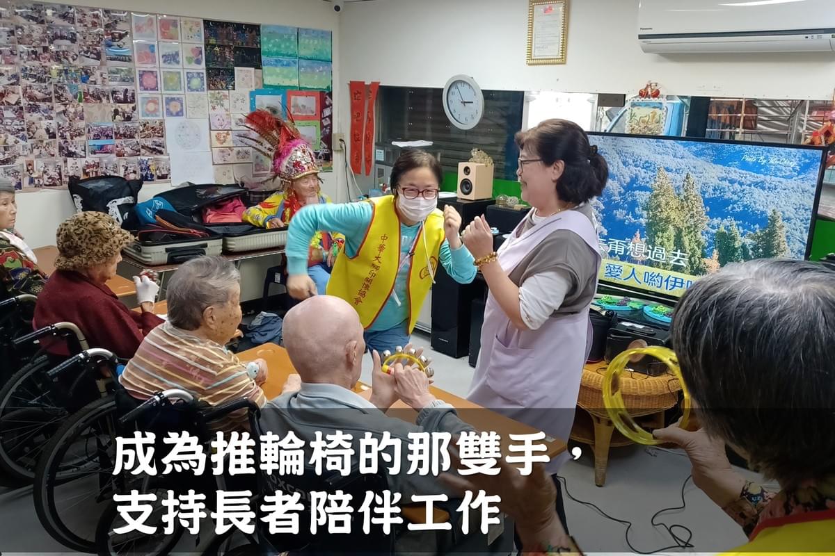 大腳印一年走進老人機構與弱勢團體超過200場,陪聊天、帶動活動、協助餵食、推輪椅外出,讓長者不只「被照顧」,也能「被陪伴」。